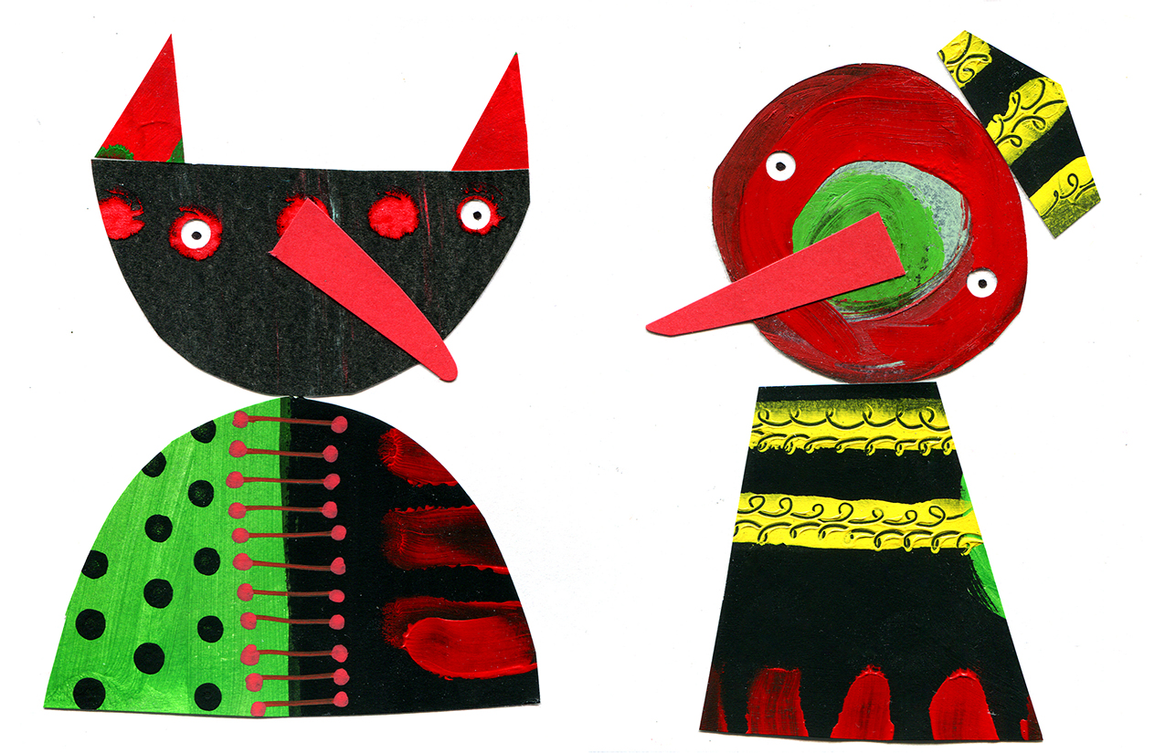Exploration de personnages en collage.